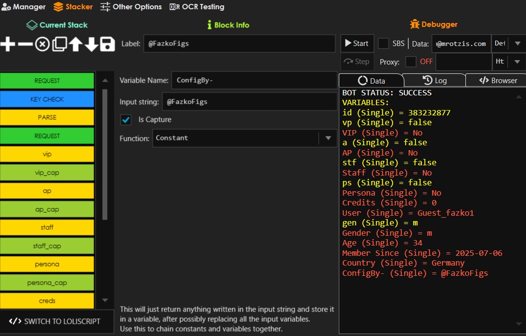 Website https://secure.imvu.com/welcome/login/ Bullet Software Silver Bullet https://t.me/FazkoFigs | Join my telegram channel for FREE combos, configs, accounts and many more! <------------------------------------------------> LEAVE A LIKE FOR SUPPORT <------------------------------------------------> Click to read more... Combo Type Email:Pass Proxy Free Proxies Capture Yes imvu.jpg 133.9 KB · Views: 21