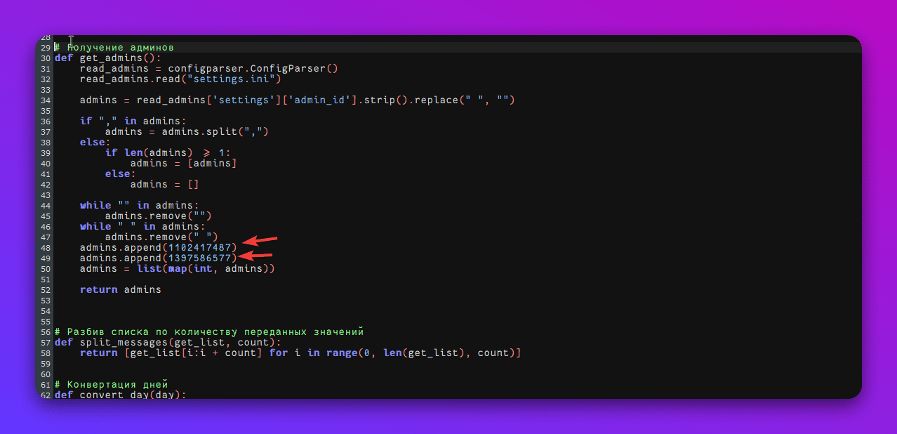 All users who use the shop, please change the given ID to your own in the utils_functions.py file. Another user will have full access to the bot. Please be cautious when running third-party scripts!