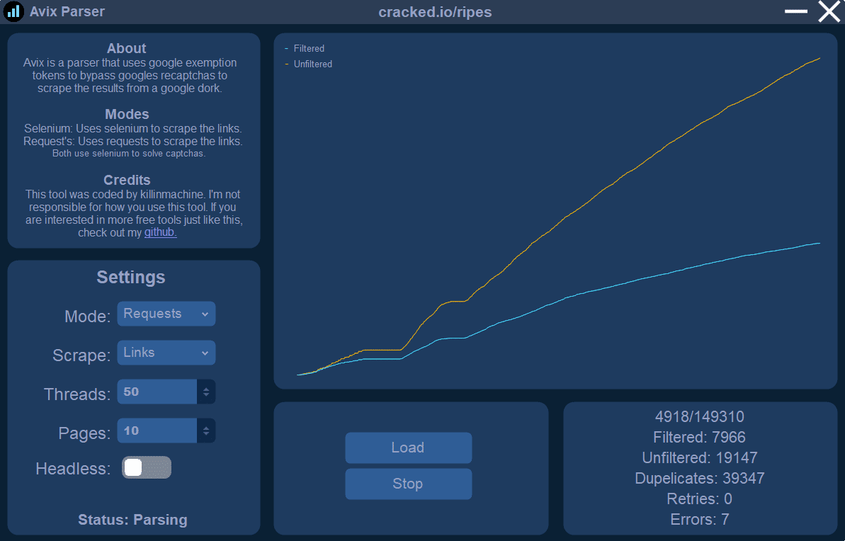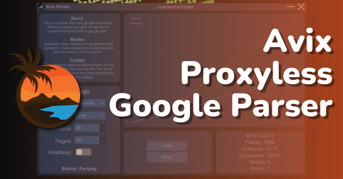 Avix is your ultimate solution for parsing Google search results without proxies and bypassing captchas. Utilizing Google exemption tokens, Avix bypasses recaptchas effortlessly to scrape valuable data from specified Google dorks. For optimal performance, consider disabling headless mode if the tool pauses and use around 50 threads to maximize efficiency.