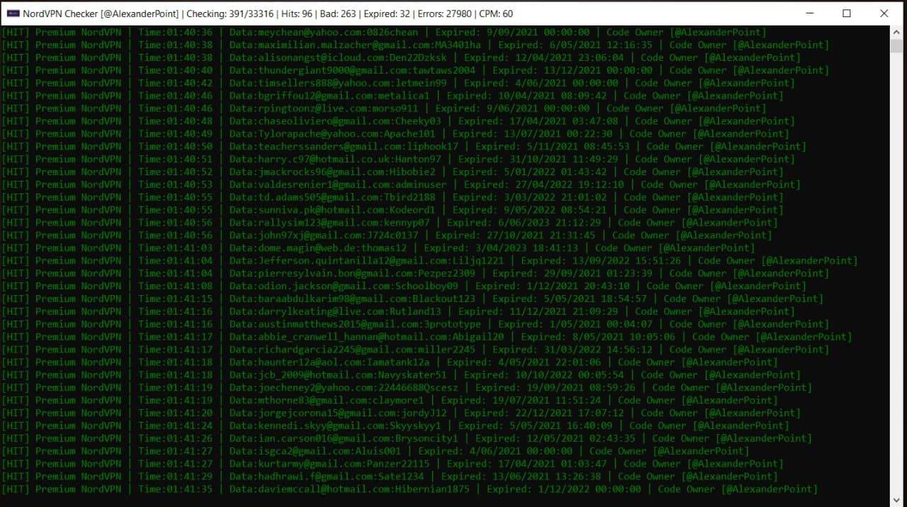 * NordVPN Checker \[@AlexanderPoint\]