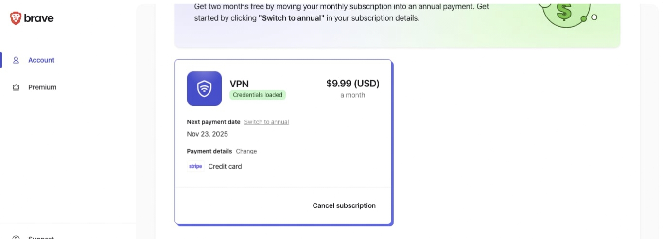 BIN BRAVE VPN + OTHER SUBSCRIPTION TRIAL ⚡ (1 Viewer)