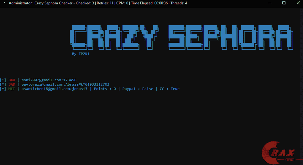 Brute CrazySephora Checker ⭐️Full Capture⭐️ Private API ⭐️SuperFast⭐️ (1 Viewer)