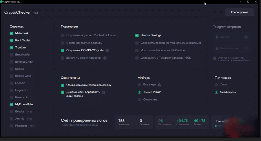 * Automatic withdrawal of Ethereum, BSC, Polygon, Avalanche from logs/seed phrases (PRO).