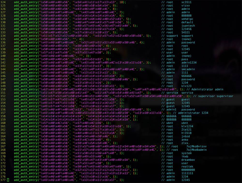 Mirai default creds sept2016