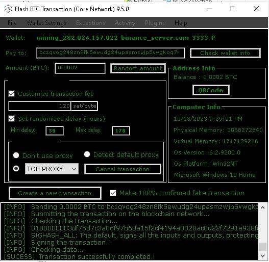 FLASH BTC TRANSACTION (CORE NETWORK) 9.5.0