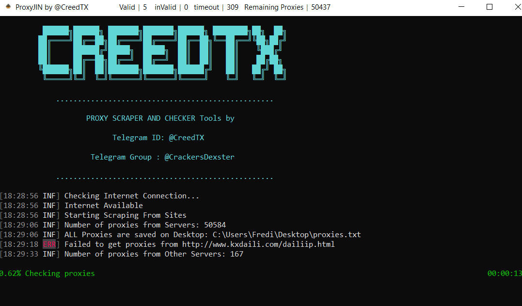 Proxy free proxy scraper + checker by CreedTX (1 Viewer)