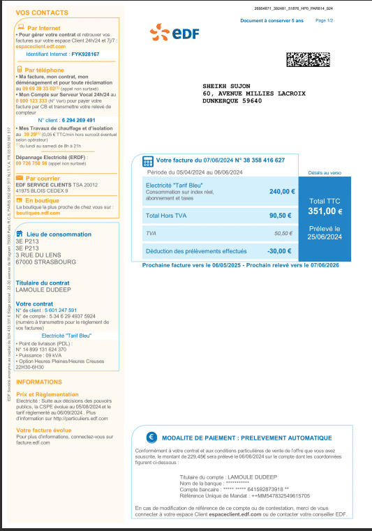 Bills French utility bill EDF electricy editable (1 Viewer)