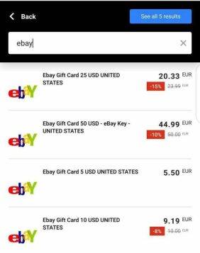 Also you can search and select Gc of your choice ranging from Amazon,eBay, steam etc.