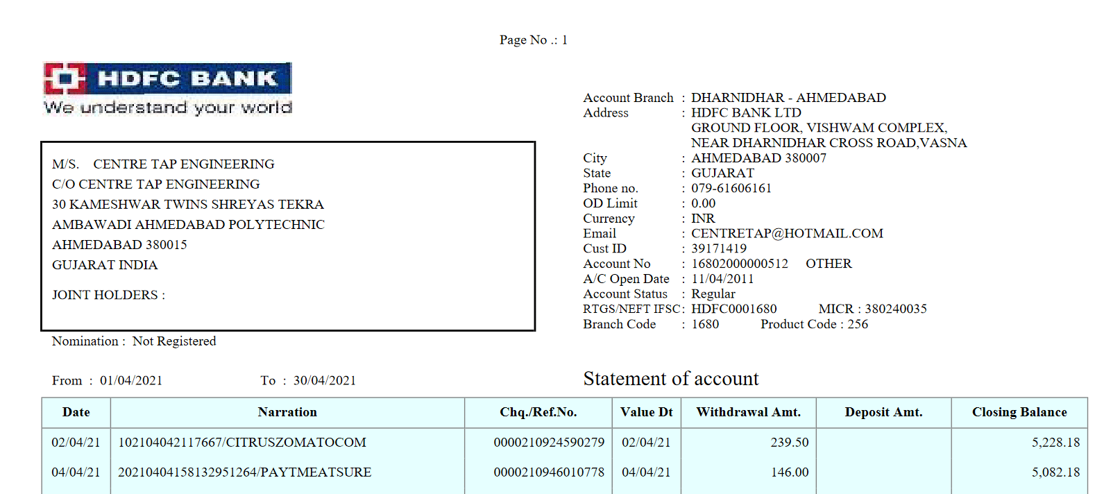 Bills Hdfc Bank statement (1 Viewer)