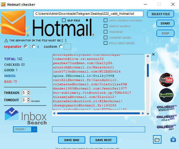 Hotmail checkerHotmail\Outlook\Live\Msn accounts checker