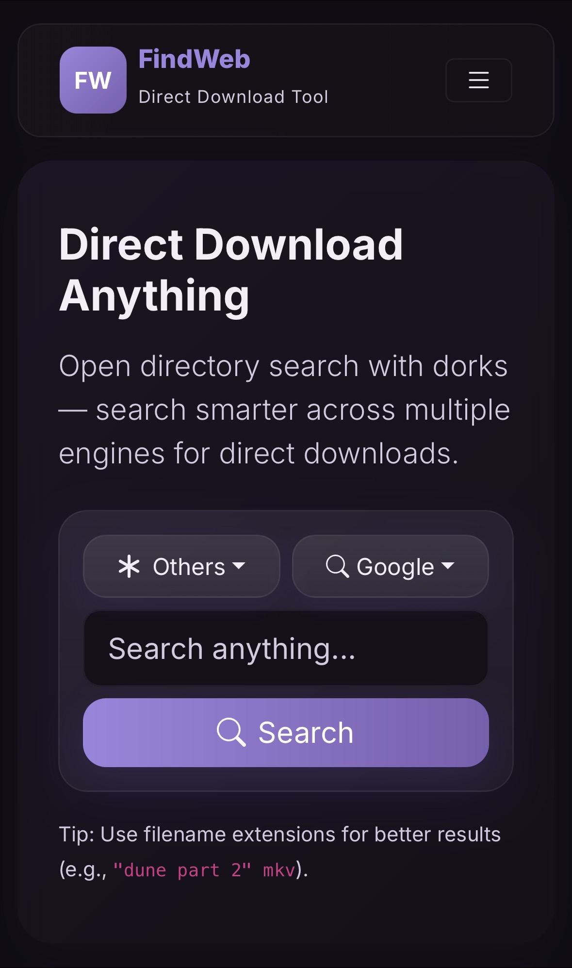 FindWeb helps you direct download almost anything — movies, TV series, books, music, software, and more.
