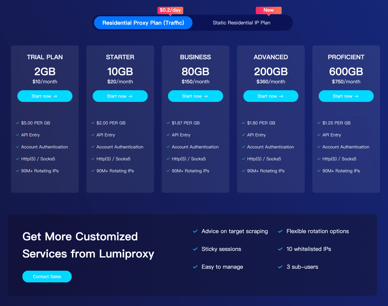 LumiProxy supports both HTTP(s) and Socks5 protocols with high speed, stable performance, and round-the-clock technical support.