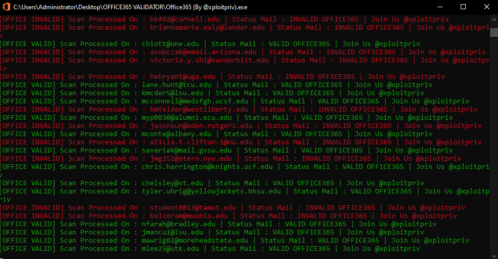 is a simple tool designed to verify the validity of email addresses associated with Office 365. It checks whether an email is active and reachable through Office 365 services. It's typically used for validating email lists and ensuring that addresses are functional on Microsoft platforms.