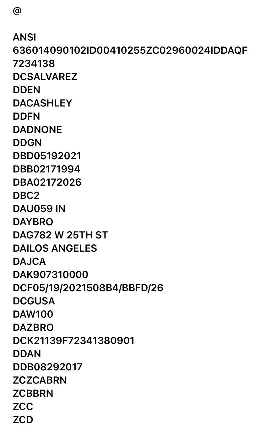 ID License PDF417 BARCODE FOR ALL CALI (1 Viewer)
