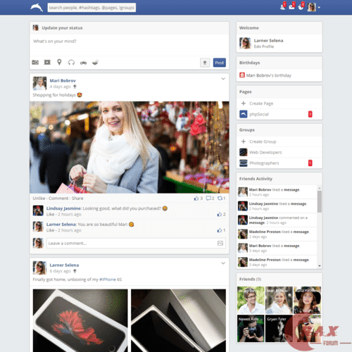 phpSocial is a Social Network Platform similar with Facebook, allowing users to interact with each other by live chatting, sending messages, comments, like, share photos, life events and so much more. View attachment 13077
