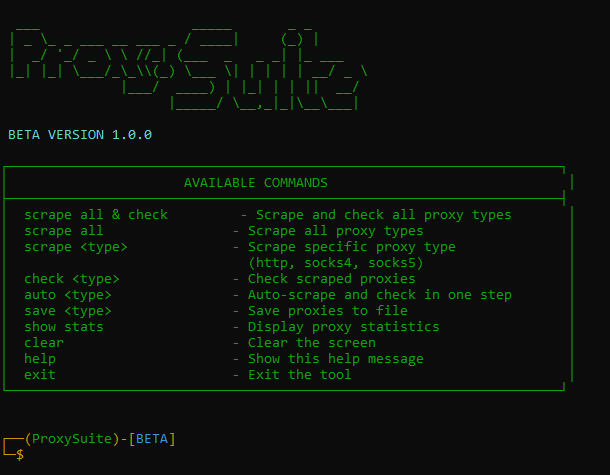 scrape <type> → Scrapes a specific proxy type ( http or socks4 or socks5)