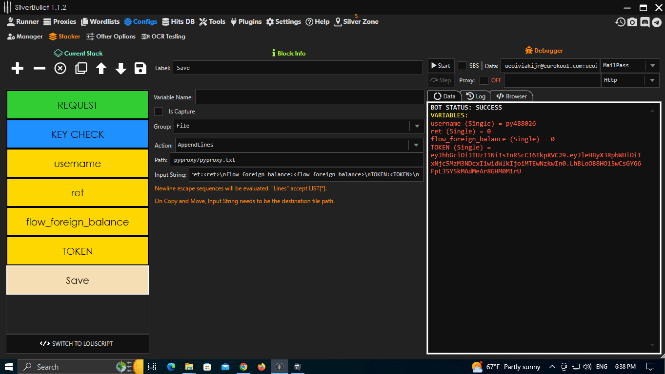 Type => Email:Pass