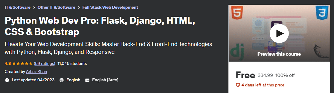 Python Web Dev Pro: Flask, Django, HTML, CSS & Bootstrap
