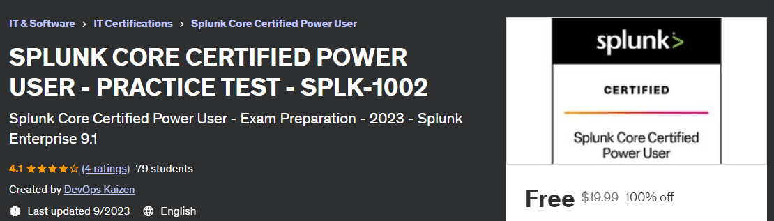 The Splunk Core Certified Power User exam is the final step in obtaining the Splunk Core Certified Power User certification. This advanced-level exam consists of 65 questions that must be completed within 57 minutes. It evaluates your expertise in various areas, including field aliases and calculated fields, creating tags and event types, using macros, creating workflow actions and data models, and normalizing data with the Common Information Model (CIM).By taking this course, you can save time on your exam preparation and gain a comprehensive understanding of the questions that will appear. This course provides detailed explanations and references at the end of each practice test, allowing you to enhance your knowledge effectively. These practice questions will be beneficial for the Splunk Analyst interview as well.