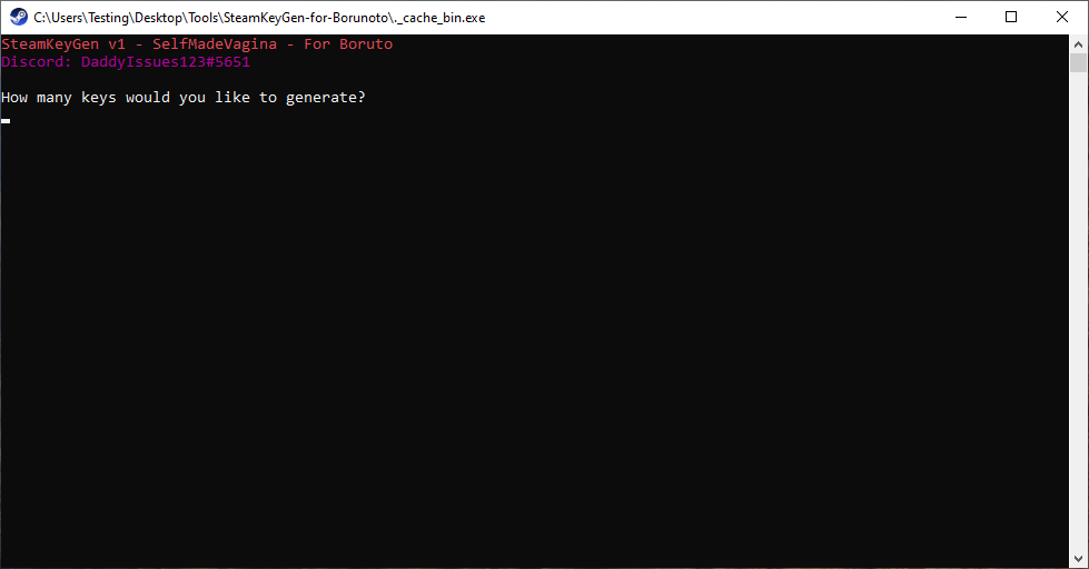 SteamKeyGen v1 – SelfMade Edition for Borunoto is a lightweight command-line based Steam key generator designed for simplicity, speed, and stealth. Whether you're testing key validation systems or just need bulk key strings for format testing, this tool gets the job done.