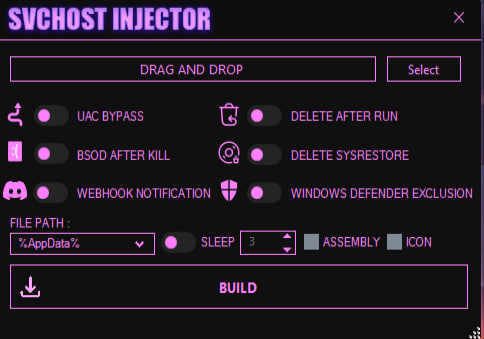 Features : Support Win 11/10 UAC Bypass Auto Start-Up Delete After Run BSOD [Anti Kill] Discord WebHook Defender Exclusion Delete SysRestore Support all RAT