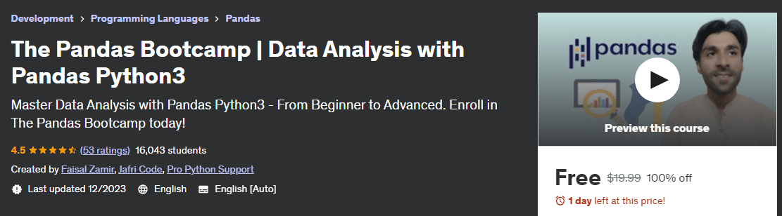 Master Data Analysis with Pandas Python3 - From Beginner to Advanced. Enroll in The Pandas Bootcamp today!